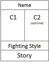 1) Drawn picture of the character in their C1 (and C2 but that's optional) and his/her/it's name
